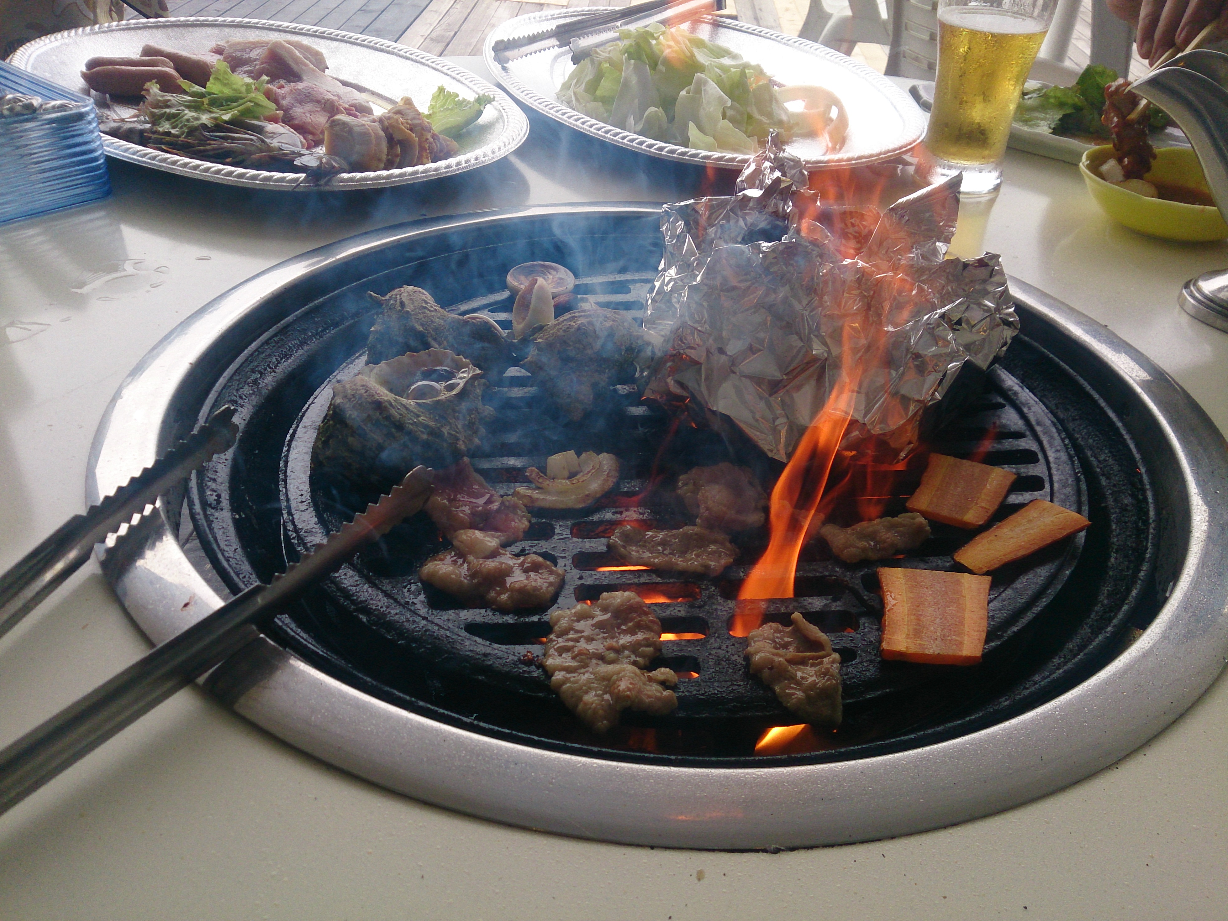 曇天に溶けそうな海を眺めながら「バーベキューでは焦げたりして」咳き込む